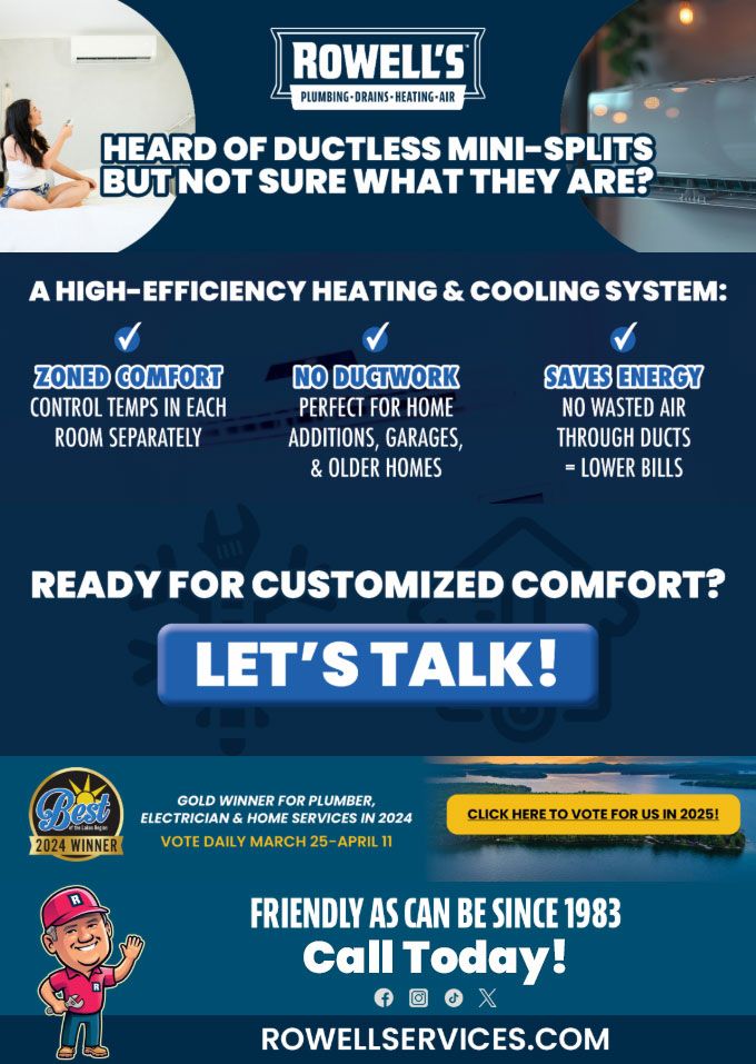 "Friendly As Can Be Since 1983!" When you need help with your plumbing, drains, heating, cooling or electrical in Loudon, you can always rely on Rowell's Services! Call us now or book online!